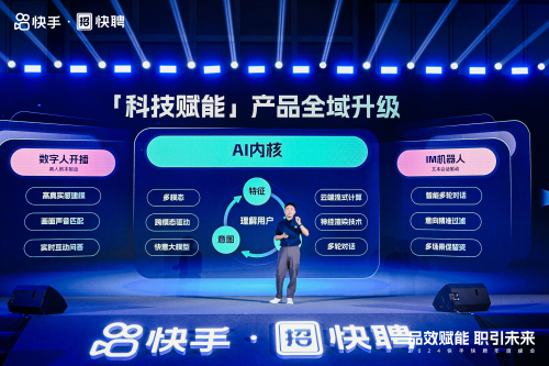 不仅是“311”计划,快聘2024年也在持续发力AI,通过AI能力内核进行产品创新,全面赋能商家。一方面,快聘利用快手大模型搭建了AI智能机器人,实现智能的功能对话、求职意向的精准过滤、多场景的留资。另一方面,快聘推出的数字人直播,实现高真实感的建模、音视频的同步以及实时的问答与互动。