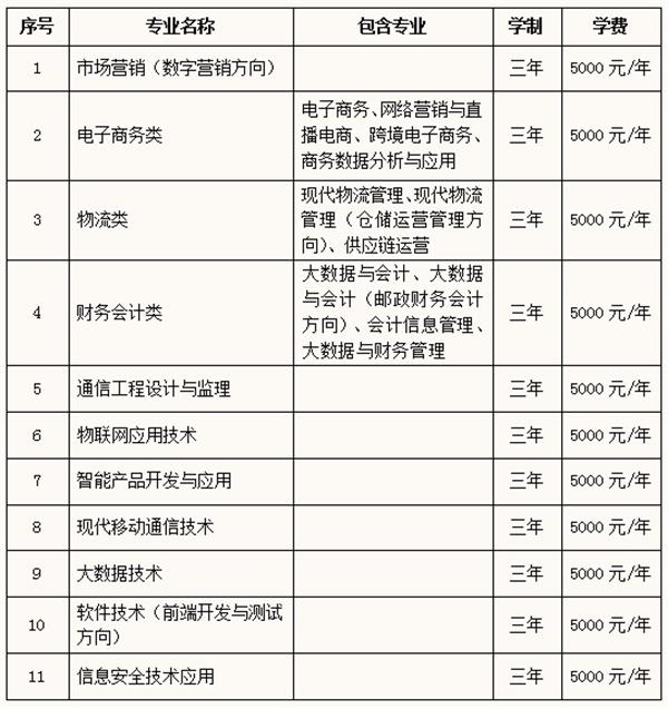 1.各专业学费均为5000元/学年,住宿费500或800元/学年。