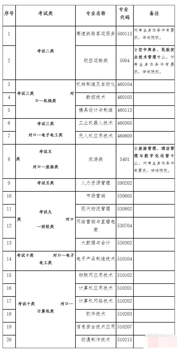 详见各考试类牵头院校2023年单独考试实施方案及学院招生就业信息服务网。附:2023年河北省高职单招各考试类实施方案
